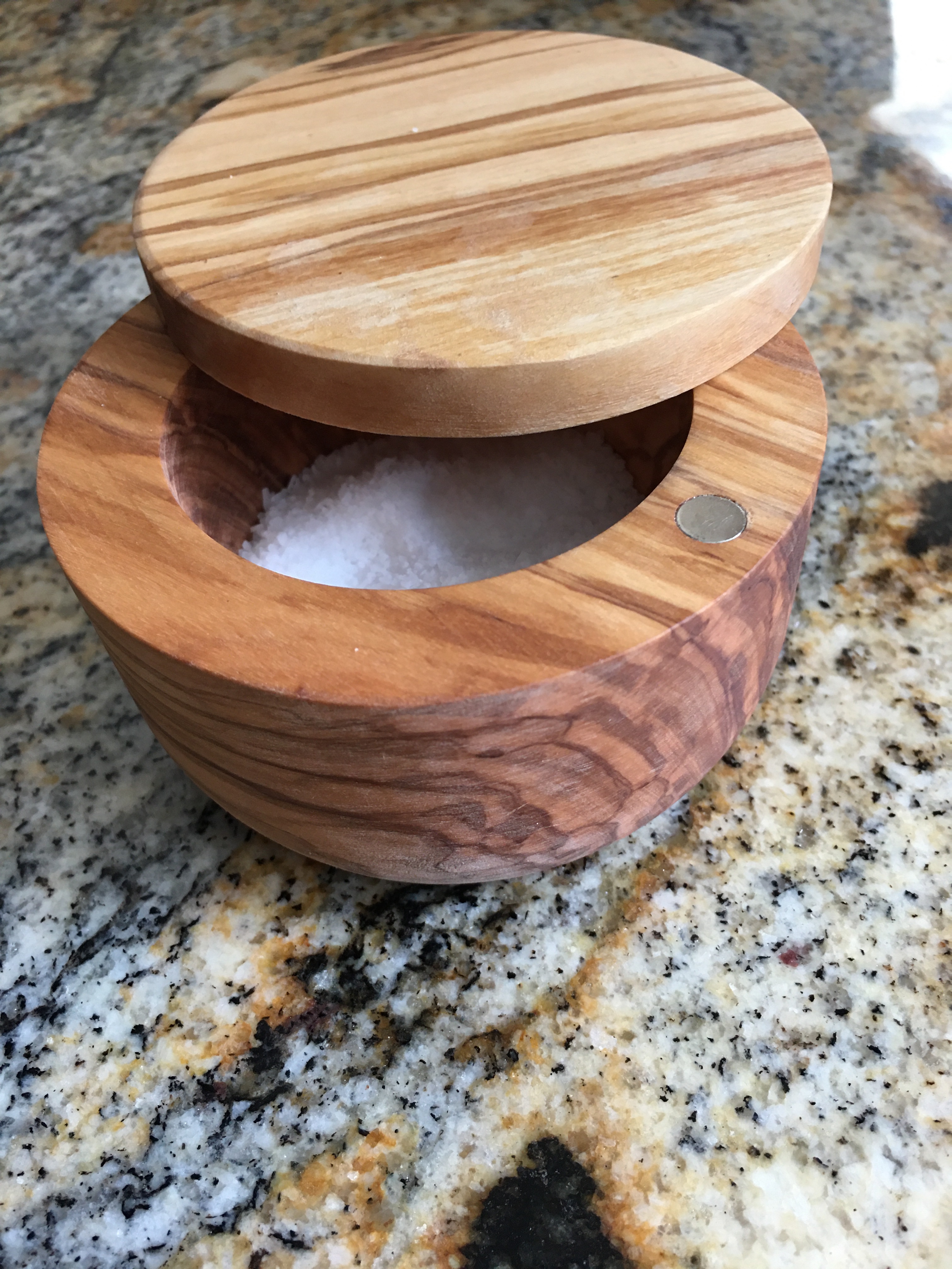 My salt bowl makes me feel like a Food Channel chef. It looks so sleek and professional sitting on the counter ready for me to grab a pinch of salt. It gives me confidence in the kitchen! Here’s a similar one on Amazon: Salt bowl