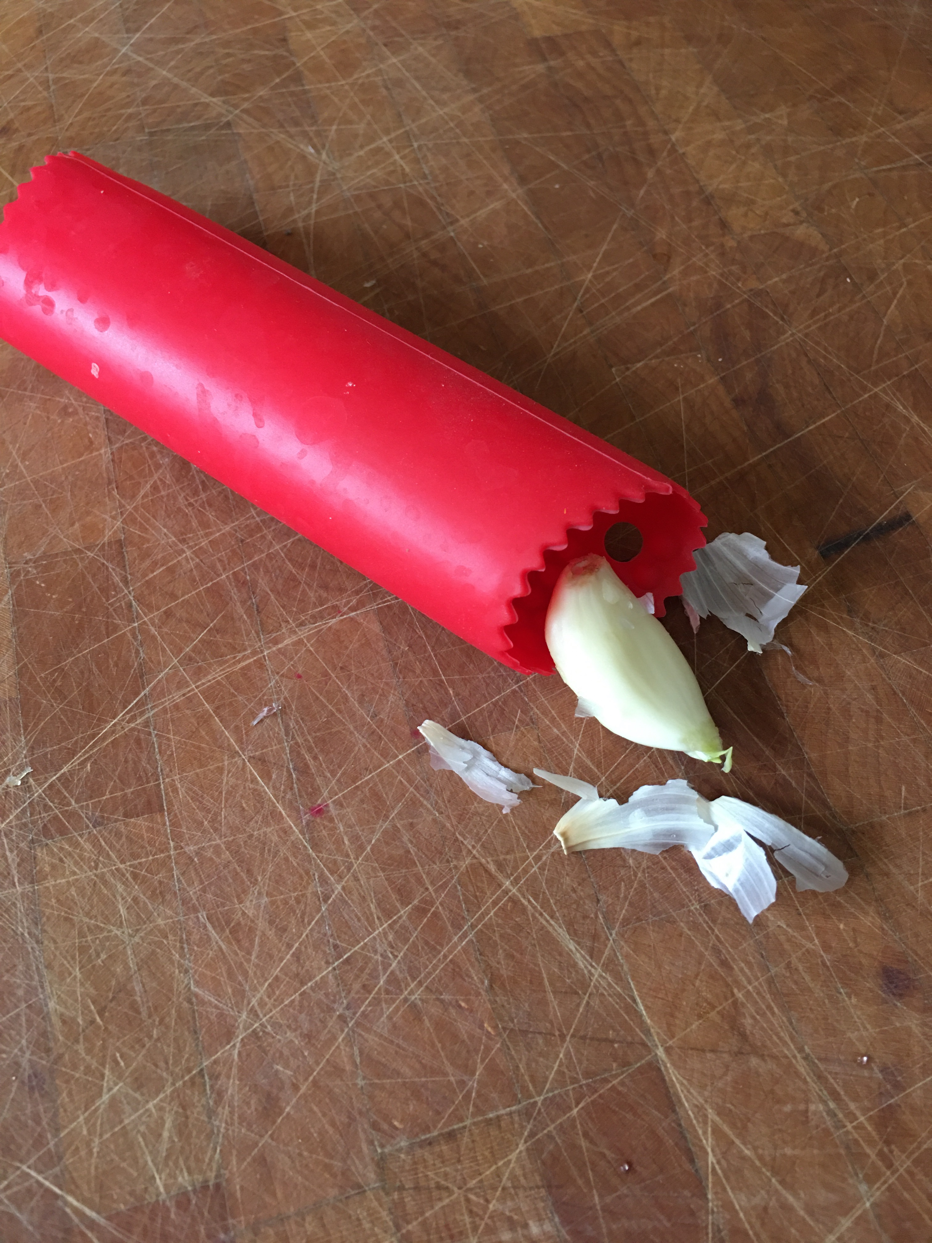 Our garlic peeler is used daily and makes me laugh every time I see it because of its back story. Garlic is a staple in our house and my husband once bought me a peeler just like this one. He was super excited to give it to me. You could see in his eyes he thought he found the most thoughtful and perfect gift for me…I thought it was dumb. I didn’t say that, of course. I’m not a cruel person! I thanked him and threw it in a drawer and it sat there unused for YEARS. One day I decided to clean out the overflowing drawer and the peeler was the first thing to go. The very next weekend my husband and I are cooking a meal together and he decides he wants to use the never-once-used-for-years garlic peeler! I had to confess that I got rid of it. He was crushed (more than the garlic I was slapping with the side of my knife.) So this past Christmas I found a two pack of garlic peelers online and put them in his stocking. As a result of my guilt, I made the effort to actually use the peeler, and low and behold, I love it! It is a wonderful and simple little tool and it makes me laugh that I spent all this time resisting a good thing. Garlic peeler