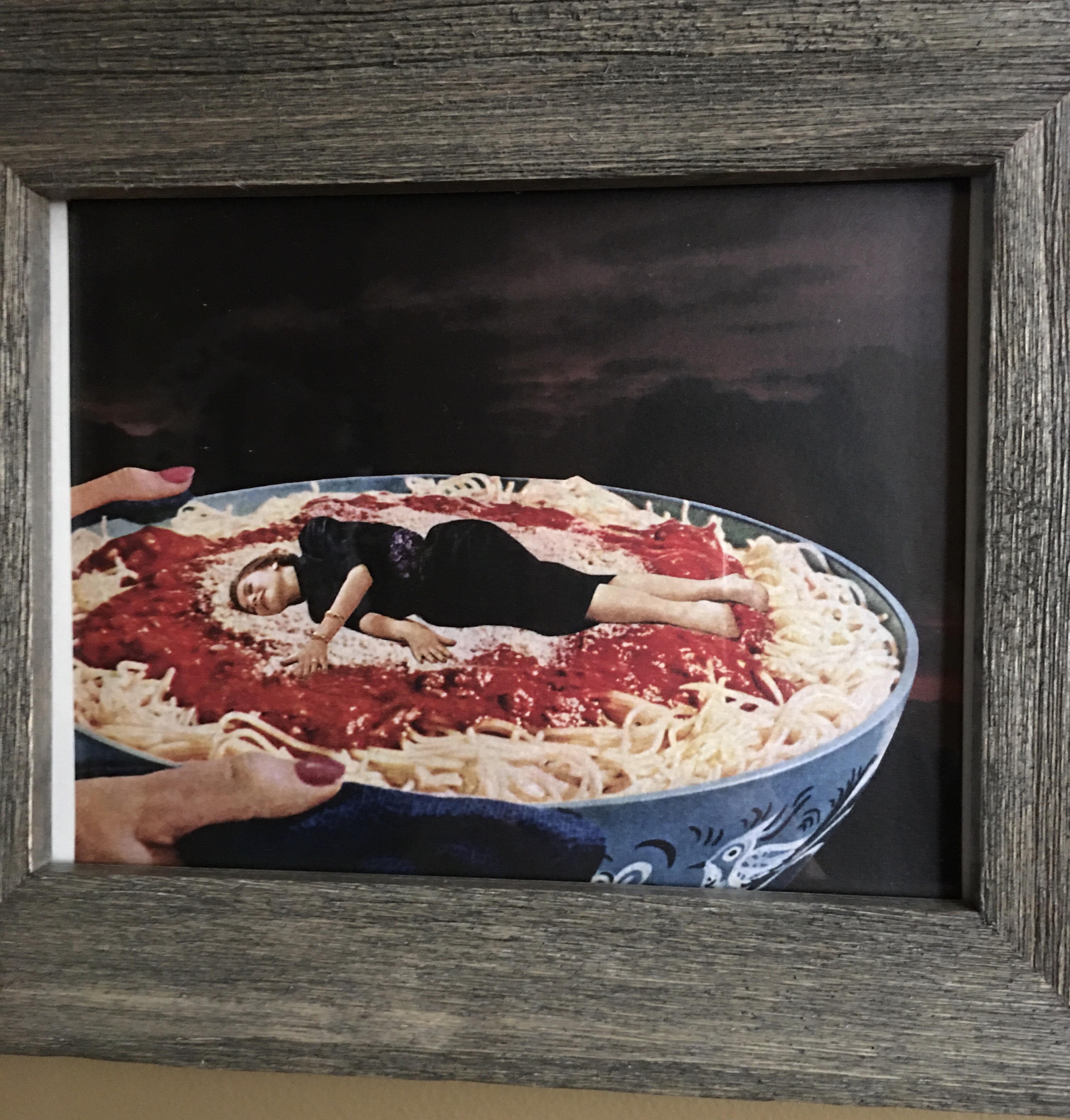 This is my newest addition – a woman living my dream, lounging on a bed of pasta. I got this print from Etsy and it was worth every cent, because I crack up whenever I see it. I am laughing right now as I write this. Just look at her! So happy cuddling her pasta!