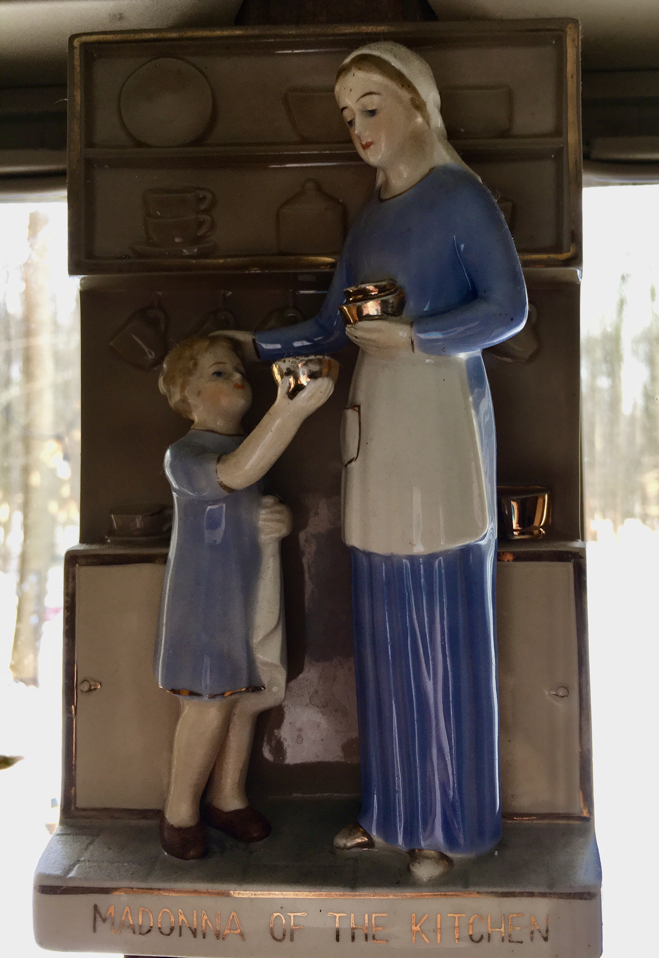 This hangs above my kitchen sink and used to be in my grandmother’s kitchen before she passed away. I love it because it makes me think of her. You can find something similar on EBay or Amazon: Kitchen Madonna