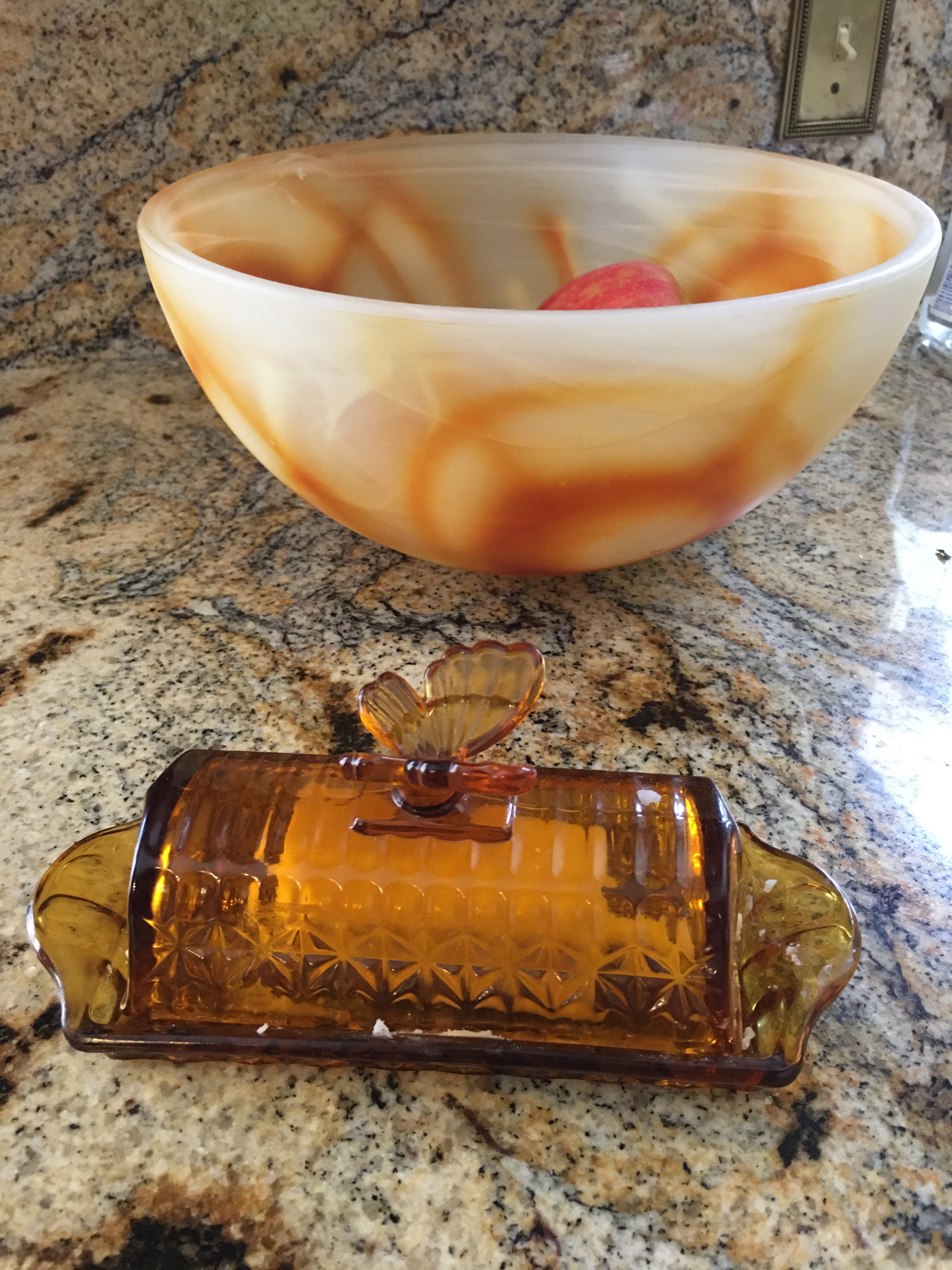 A cool fruit bowl on the counter top not only looks good, but also encourages the kids to grab a piece of fruit. I also LOVE my old fashioned butter dish. I leave my butter out on the counter so it’s always soft, therefore I MUST have a pretty covered dish.