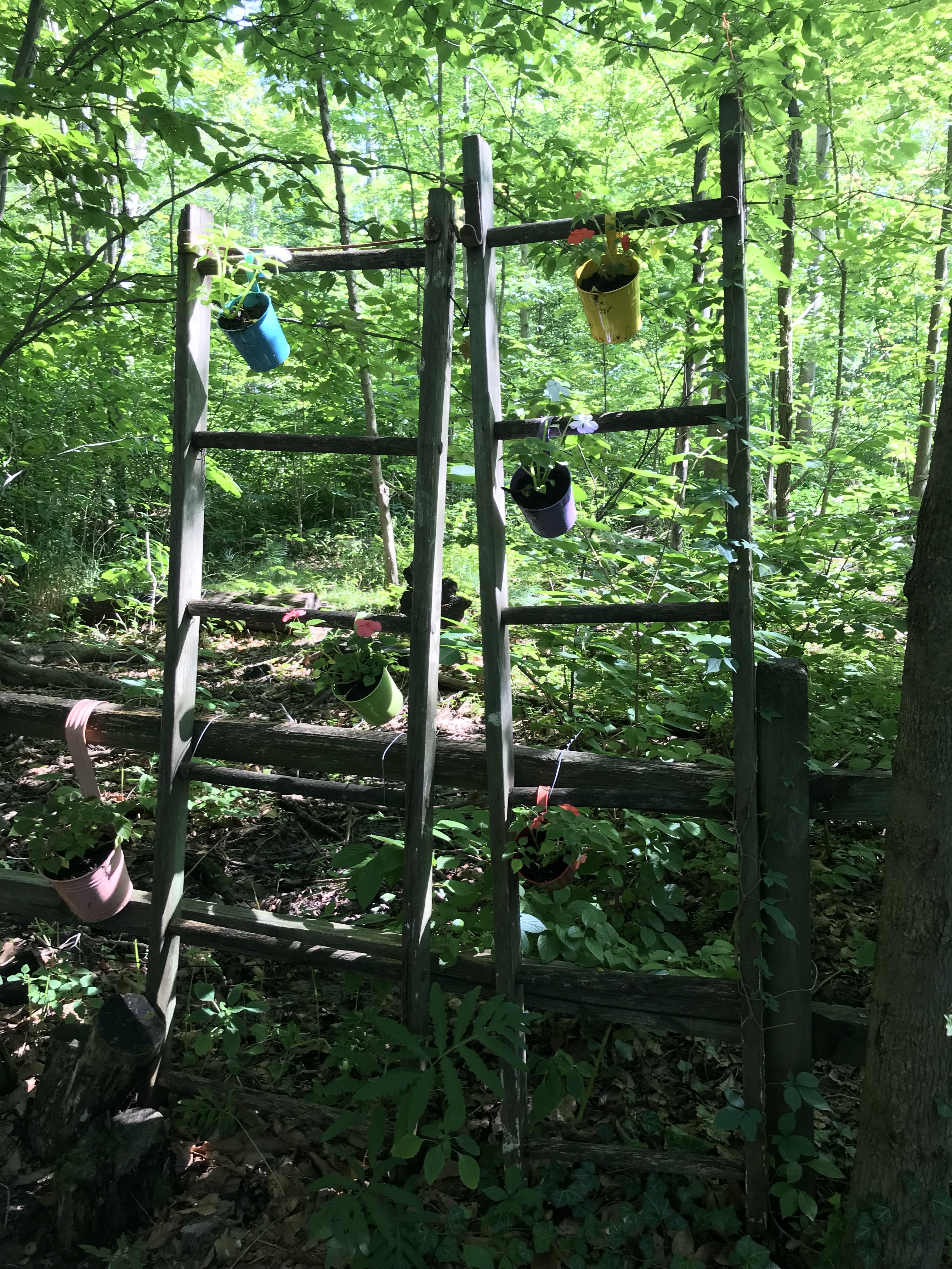 An old ladder and some hanging pots – just lovely, but unfortunately at the perfect height for the deer to much a snack… 10-pack metal hanging buckets