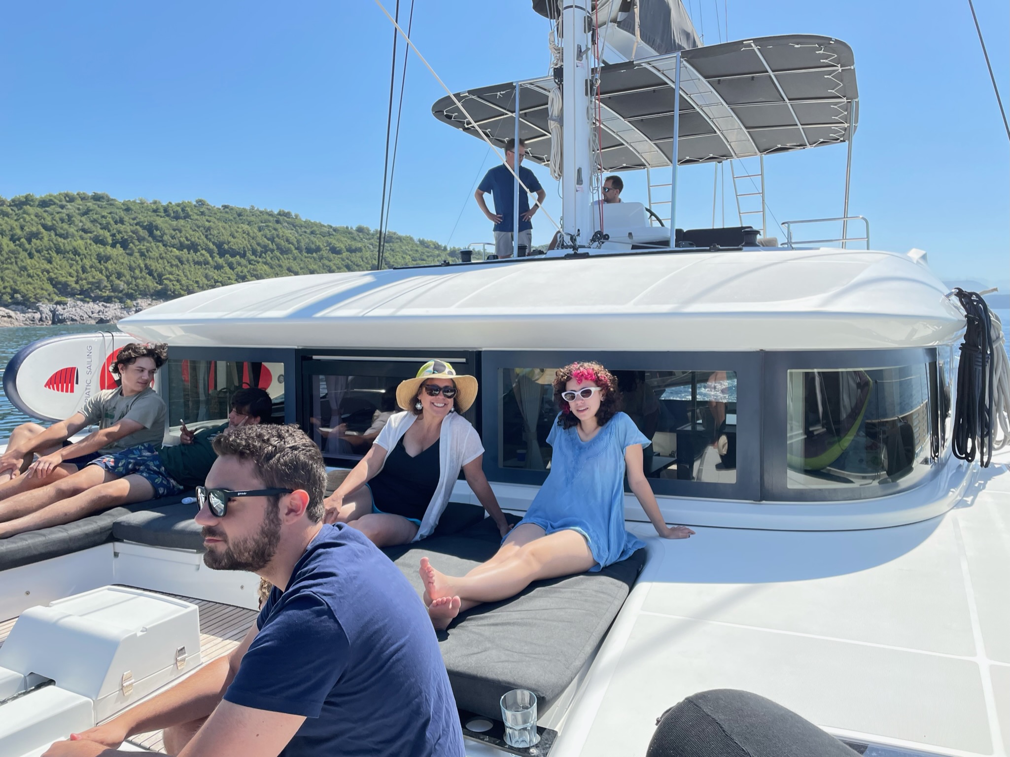 Our friend Ana speaks the language and has visited Croatia several times, so she organized most of the activities. We spent the first week on a catamaran sailing along the Adriatic coast and island hopping. This beautiful boat fit 12 people! (DTD and I have three children, and Ana and her husband have four, plus there was a captain.) We started in Dubrovnik, and each day we would enjoy a leisurely cruise to the next island, where we would explore and eat. We saw Mljet, Korcula, Vis, Hvar, and ended in Split. Each night we slept on the boat.