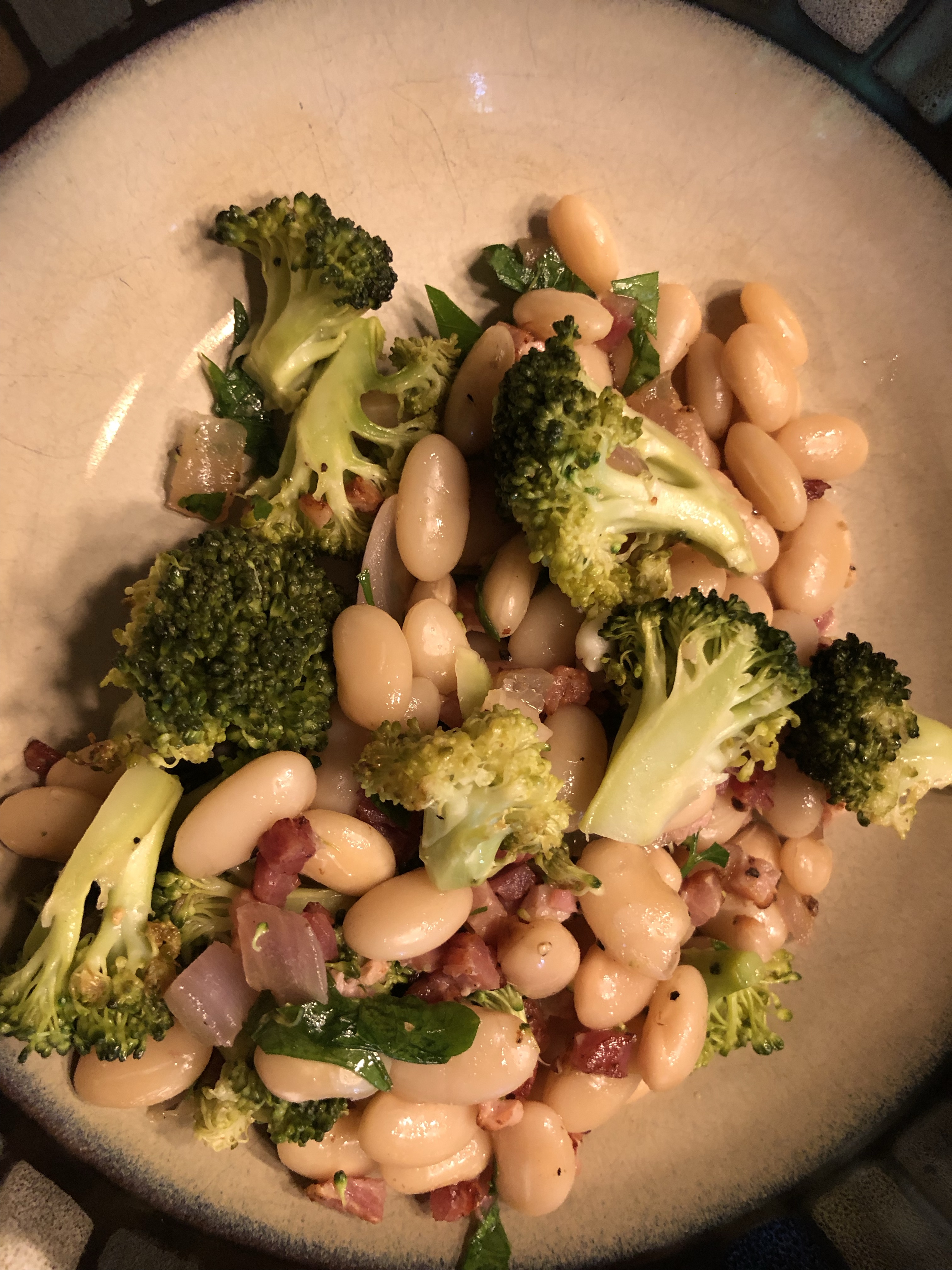 Roasted White Beans and Broccoli with Pancetta with Italian Farinata Chickpea Flatbread and Wax Beans