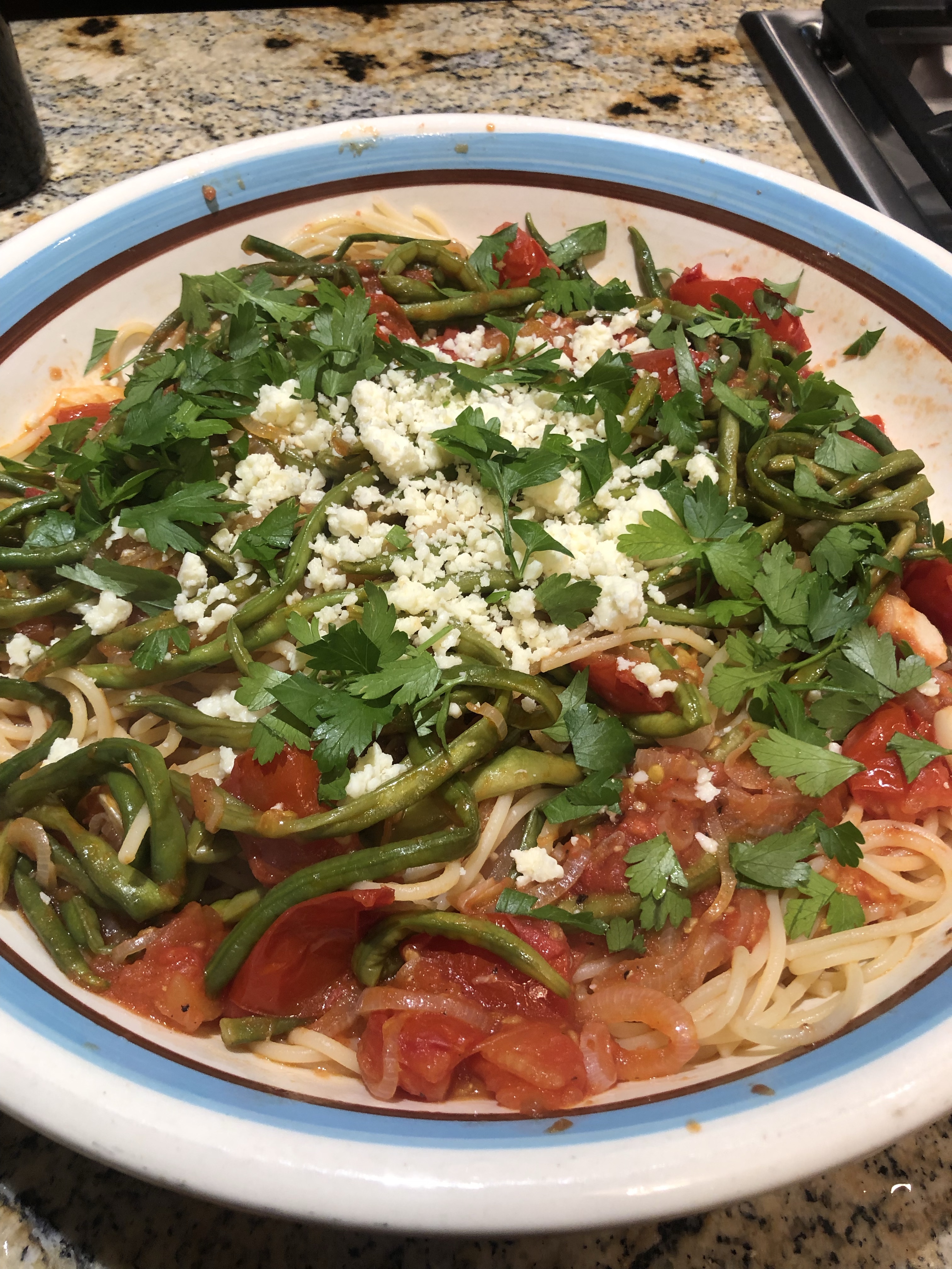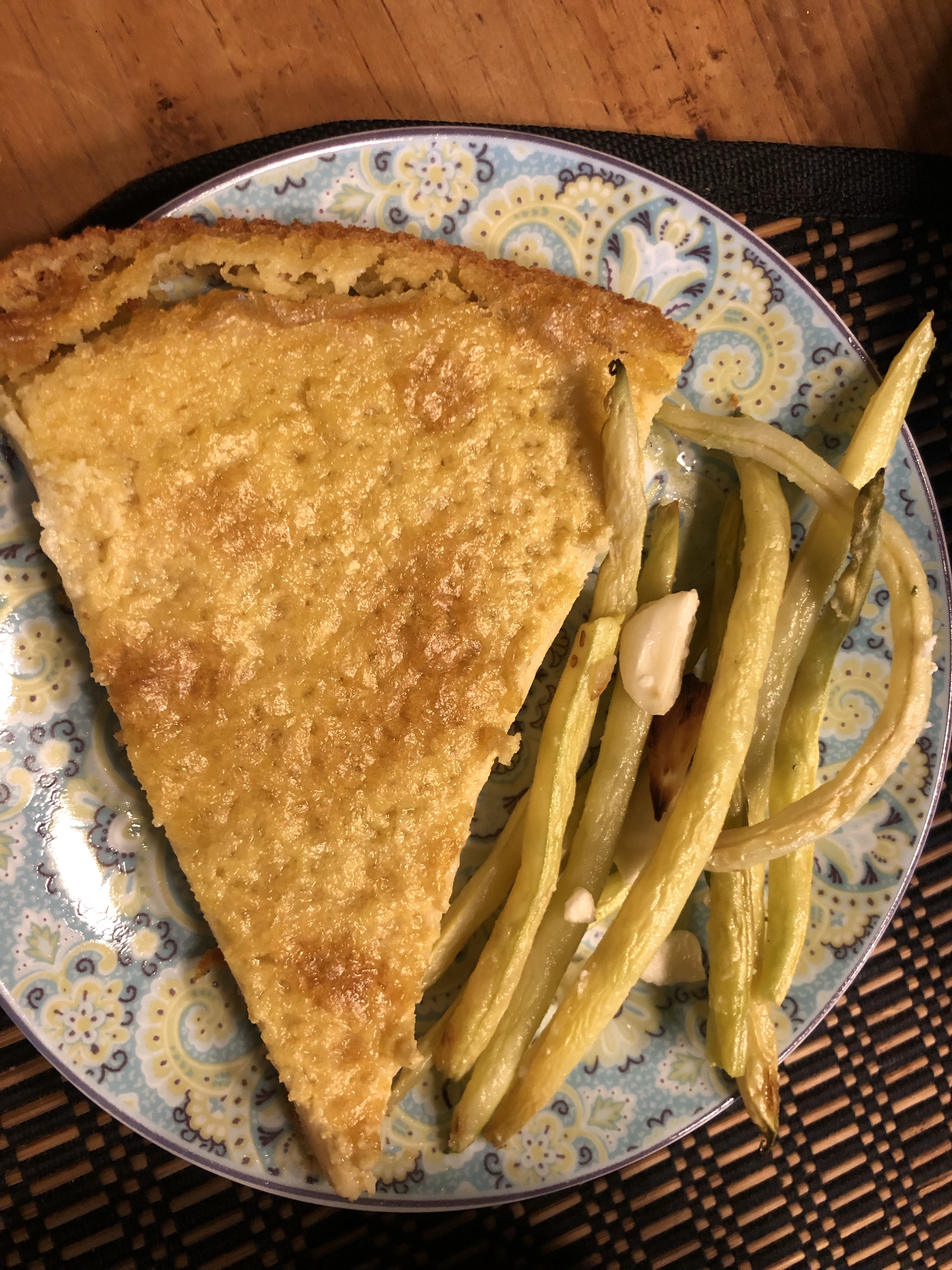 Again, relatively healthy and you could leave out the pancetta to make it super healthy. I wasn’t ready for that yet! The broccoli recipe is from the blog A Farmgirl’s Dabbles, and the flatbread is from Inside the Rustic Kitchen. The green beans were just cooked in our air fryer with garlic and olive oil and sea salt. YUM!