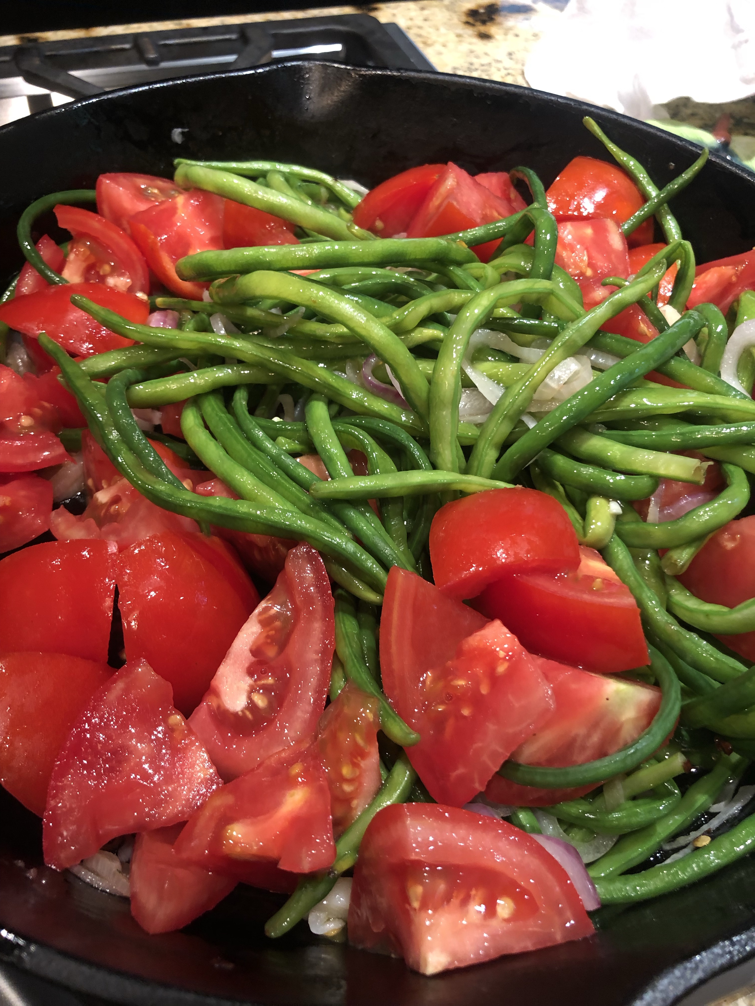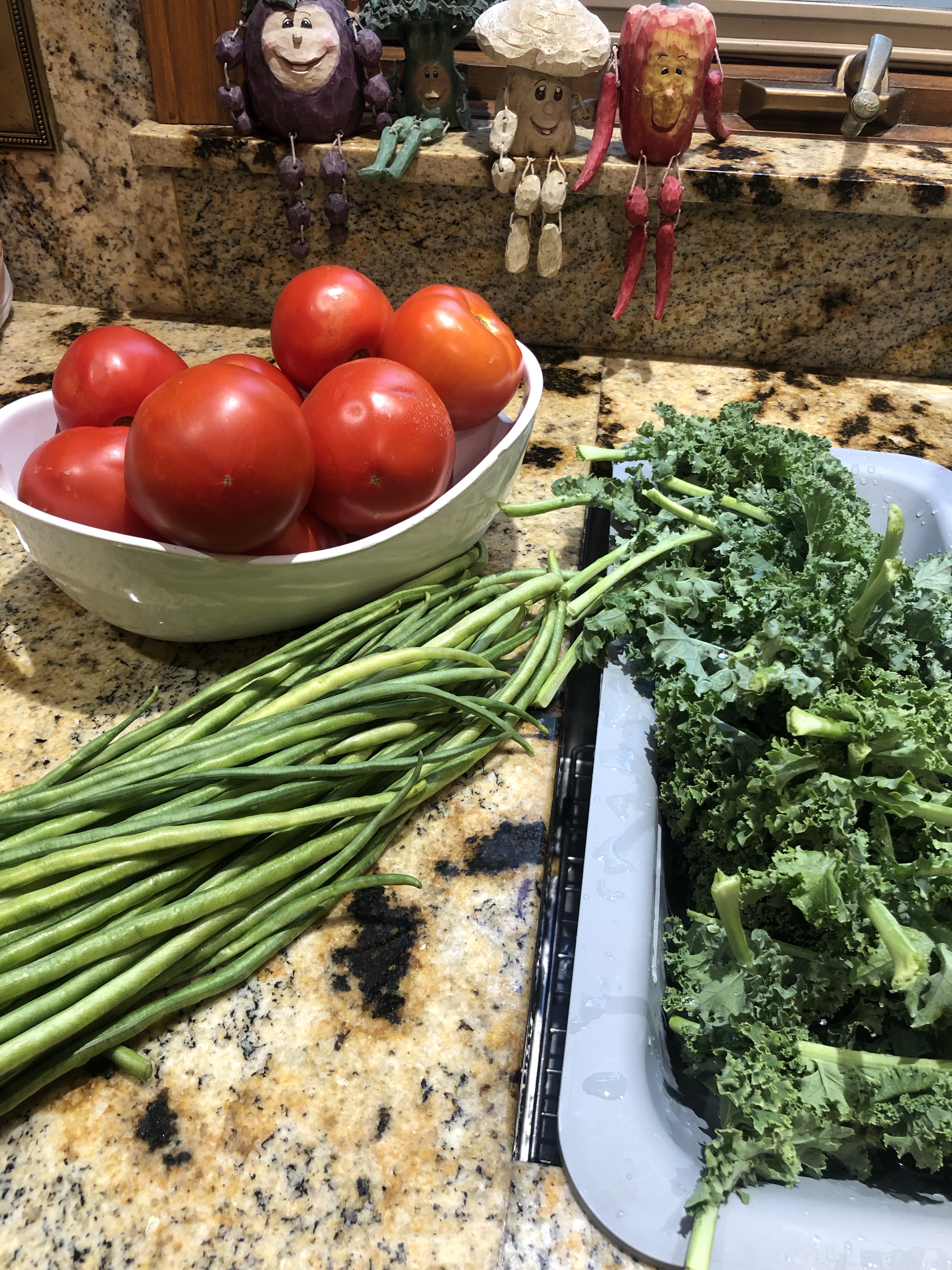 Fresh Tomato and Long Bean Pasta with Sautéed Kale