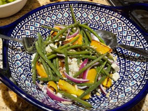 This is a variation of a recipe I found online from delicious.com called “Chargrilled Peaches, Green Beans and Almonds.” I changed the original quite a bit, though, to suit my mood and my time constraints. Here is my version: