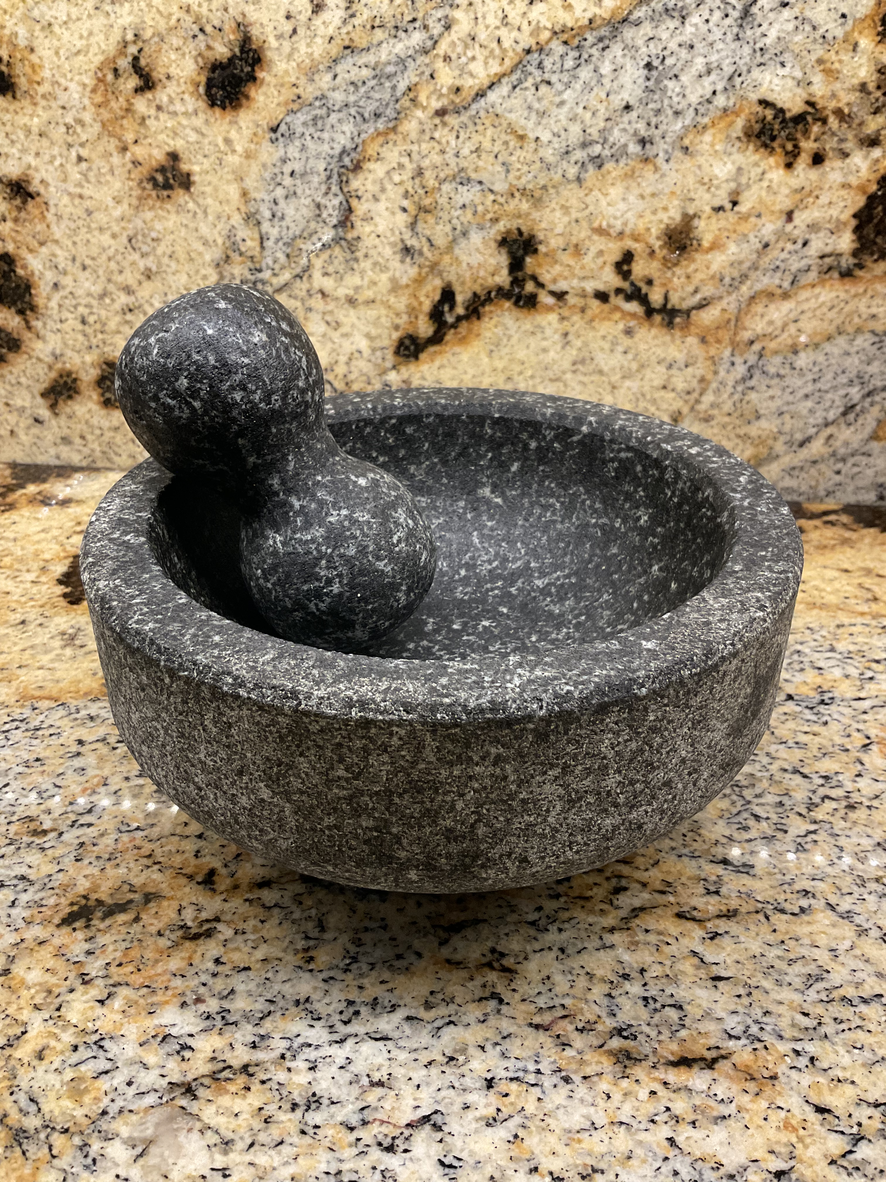 Granite Mortar and Pestle: For many years DTD and I have used a little marble mortar and pestle but always complained about the size. I finally invested in a large granite version as a Father’s Day gift, and we use it all the time. It is heavy, so it remains on the countertop. Luckily it looks cool even when not in use!