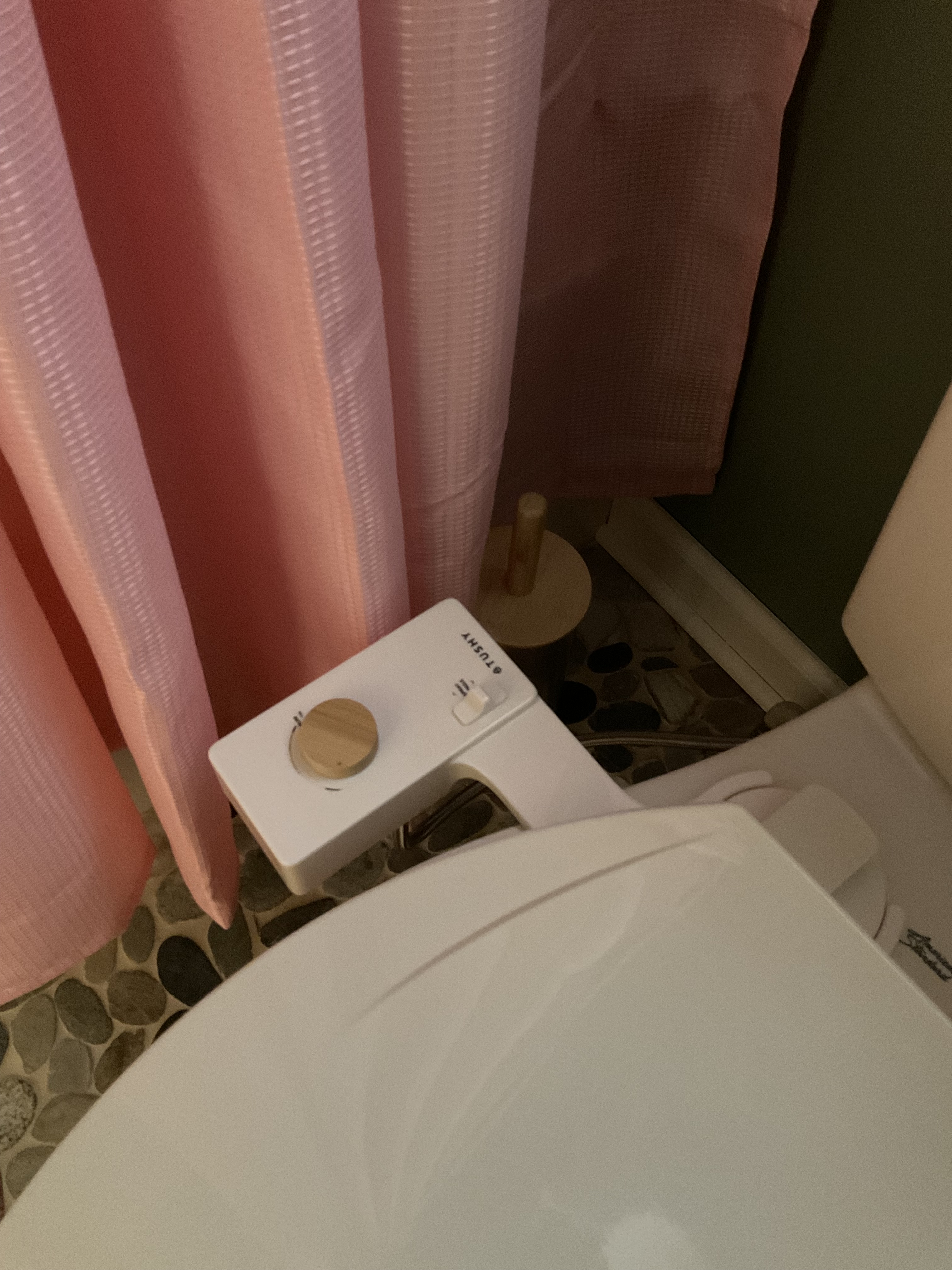 Bidet: We also have a non-electric bidet which can very easily be attached to any toilet seat. This is a great gateway version to see if you like it before investing in an electric model. Trust me – once you have a bidet you will wonder how you could possibly have gone without one all these years!
