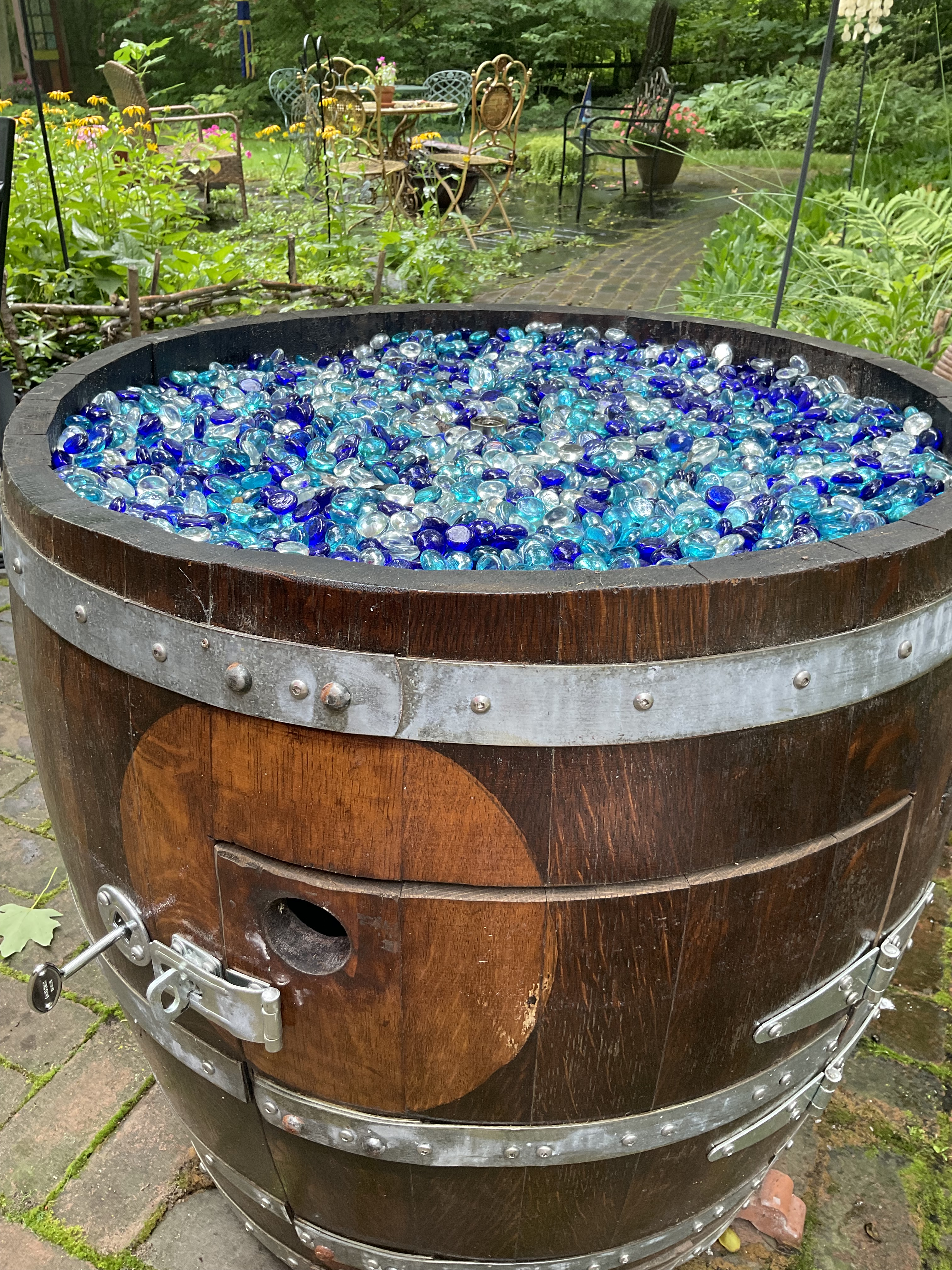 Fire Glass Beads: To cap off our outdoor entertaining, we also added some colorful glass beads to our propane wine barrel firepit. They look great even when the fire isn’t lit. I love the colors.