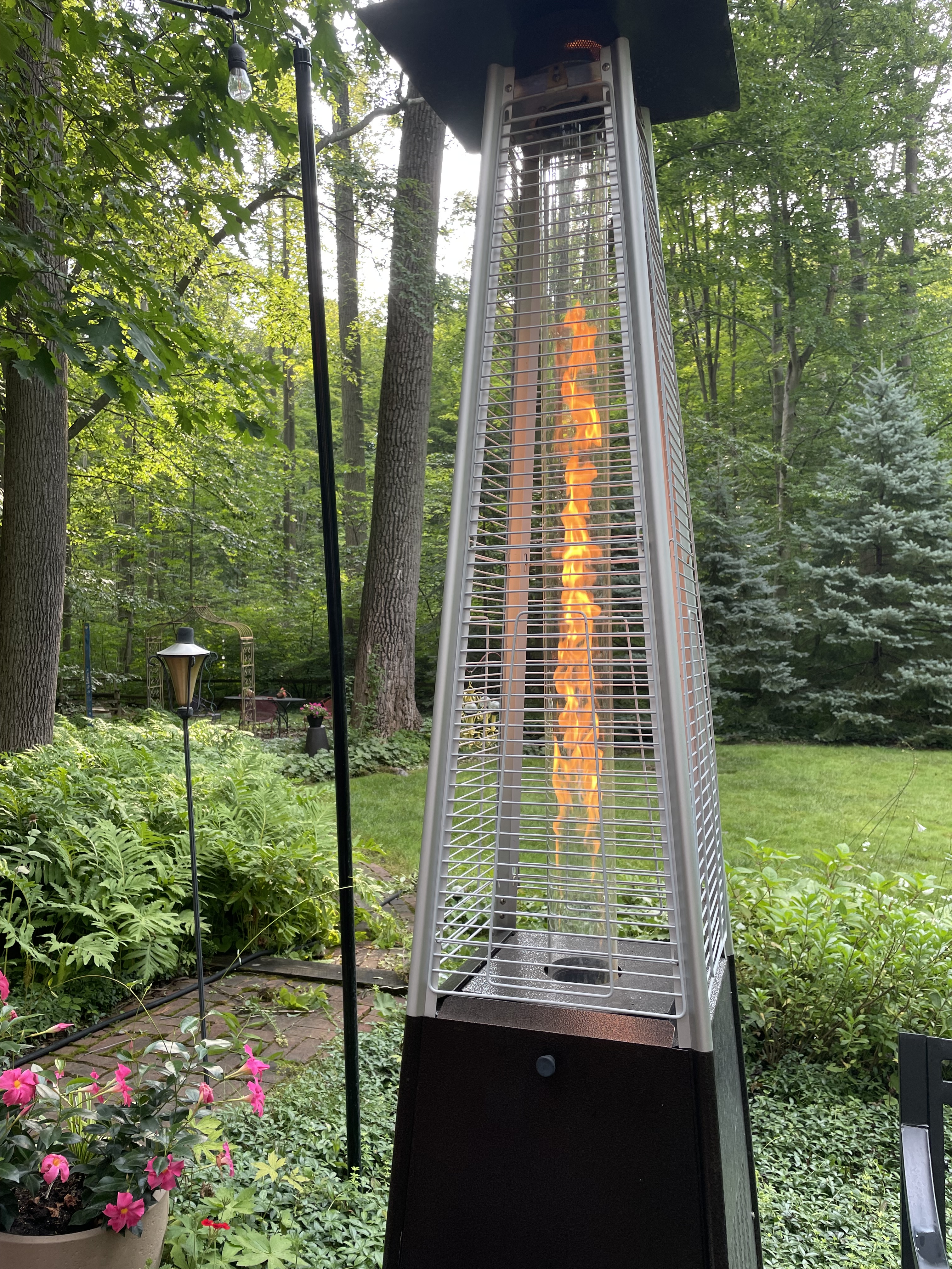 Outdoor Heater: We purchased this propane heater a few years ago during the pandemic to extend the possibility of outdoor entertaining during the fall and winter months. A few years later, we still enjoy using it. It is beautiful and functional and adds a very festive and sophisticated atmosphere to our patio.